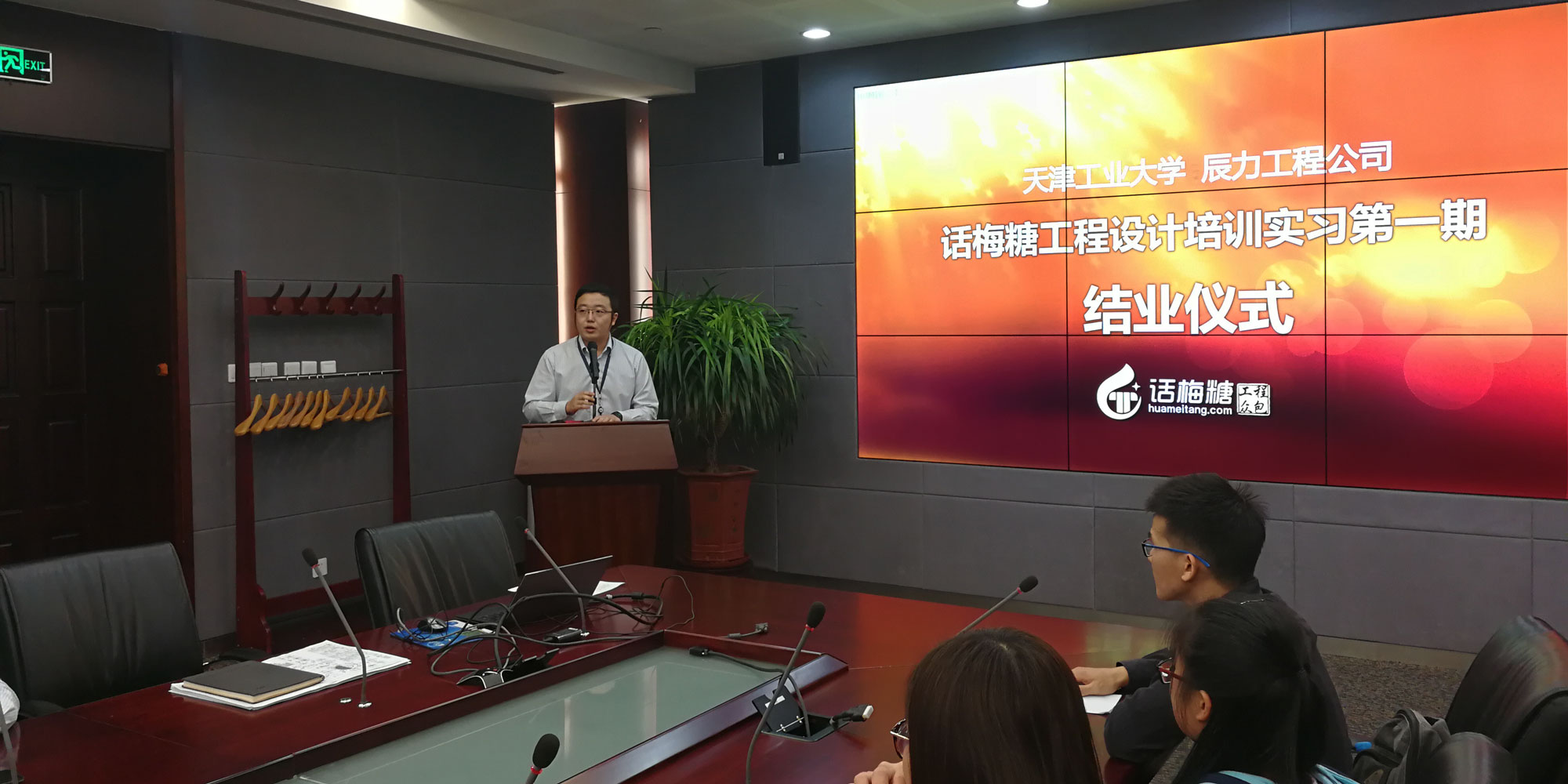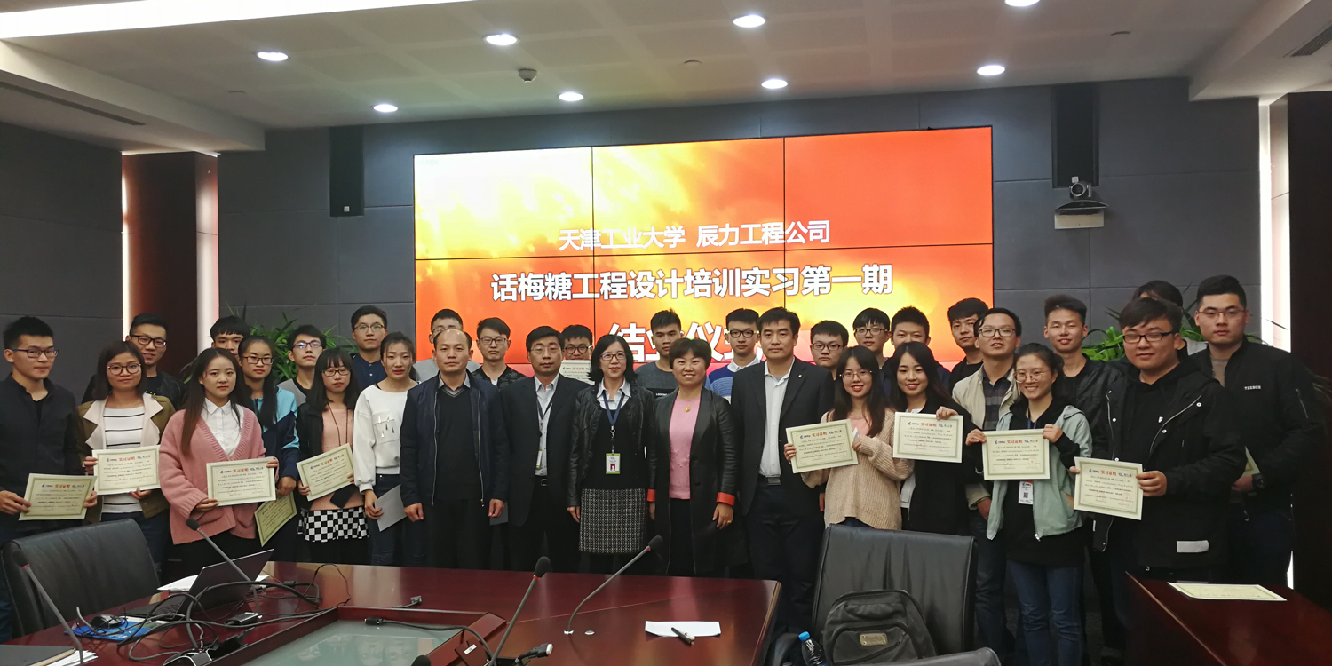 2017年10月27日下午,公司與天津工業大學材料學院卓越班合作的“話梅糖工程設計培訓實習”第一期結業式在天辰大廈會議中心舉行。