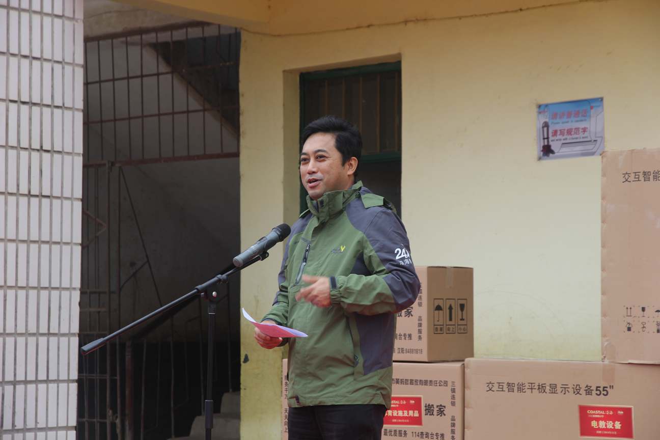 在簡單而莊重的捐贈儀式上,沿海綠色家園集團戰(zhàn)略管理部總經(jīng)理陳昕代表沿海集團將上述捐贈物品移交給師生代表。他在發(fā)言中向當(dāng)?shù)卣W(xué)校老師和媒體嘉賓介紹了沿海綠色家園集團的情況及其歷年來在公益慈善方面的作為。