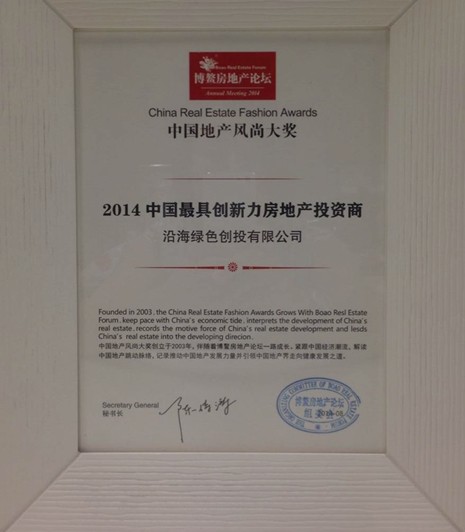 8月6日至9日,沿海綠色創(chuàng)投有限公司(以下簡稱:沿海創(chuàng)投)應(yīng)邀亮相海南博鰲,并榮獲“2014中國最具創(chuàng)新力房地產(chǎn)投資商”大獎。由觀點(diǎn)地產(chǎn)新媒體主辦,每日經(jīng)濟(jì)新聞、搜狐焦點(diǎn)、華夏時(shí)報(bào)、時(shí)代周報(bào)共同協(xié)辦的“2014博鰲房地產(chǎn)論壇”在海南博鰲亞洲論壇大酒店隆重舉行,會議期間還舉行了“中國地產(chǎn)風(fēng)尚大獎頒獎典禮”。眾多經(jīng)濟(jì)學(xué)者、企業(yè)領(lǐng)袖、行業(yè)巨頭等嘉賓齊聚一堂,再啟地產(chǎn)精英博鰲論劍的大戲。